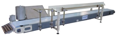 Конвейер ленточный передвижной с функцией опрокидывания мешка предназначен для горизонтального перемещения вертикально стоящих открытых мешков (до 50 кг) с продуктом (мукой, комбикормом, сахаром, пшеницей, семенами, топливными гранулами, строительным песком, щебнем, древесным углем, каменным углем, угольными брикетами и др. сыпучими продуктами) от места заполнения мешков к месту их зашивки, опрокидывания зашитого мешка в горизонтальное положение. Перевод зашитого мешка с конвейера на конвейерную линию транспортировки к месту их погрузки или складирования.