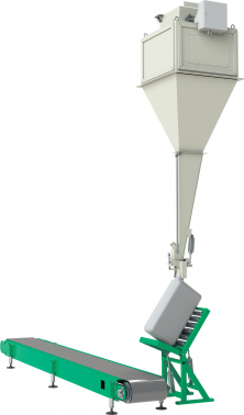 Фасовка средней производительности хорошо сыпучего продукта до 50 кг в клапанные мешки.