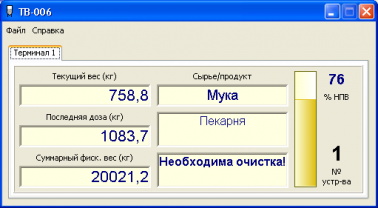 В режиме реального времени программа может отображать для каждого весового терминала мнемосхему загрузки емкости и следующие поля: