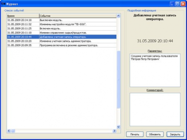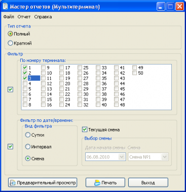 Каждому модулю, работающему с оборудованием, соответствует свой модуль для генерации отчета. Просмотр и печать отчетов за предыдущие периоды осуществляется без остановки взвешивания.